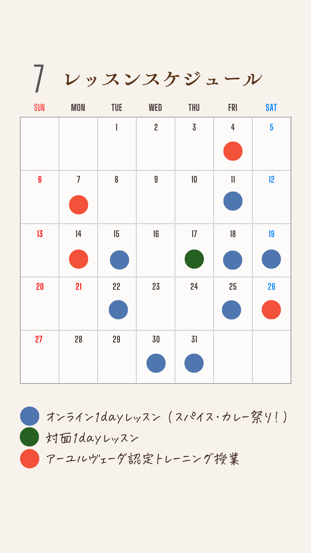 - 7~8月 オンライン1dayレッスン(スパイス&カレー祭り)
