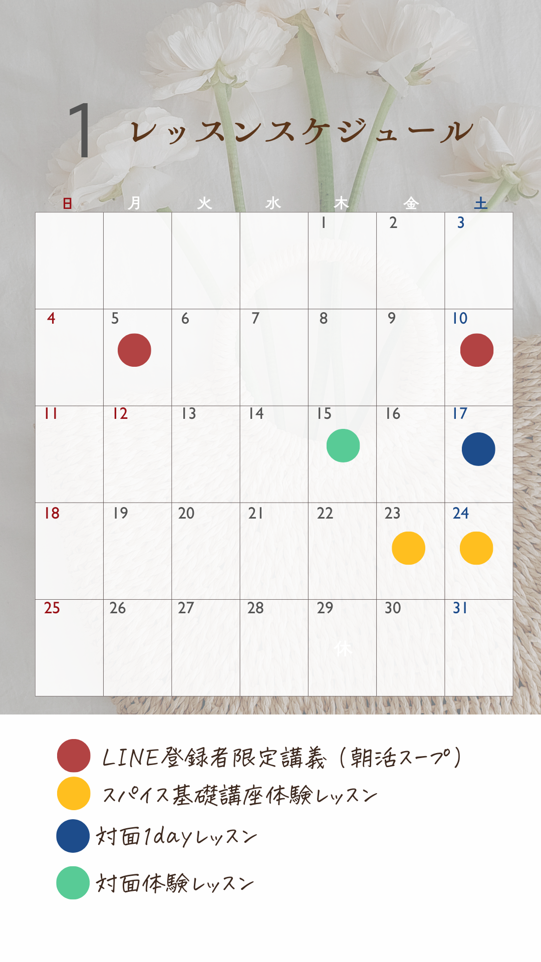 - 1/5(月)、1/10(土)6:30~7:30《オンライン》LINE登録者さま限定無料講座(朝活スープ)