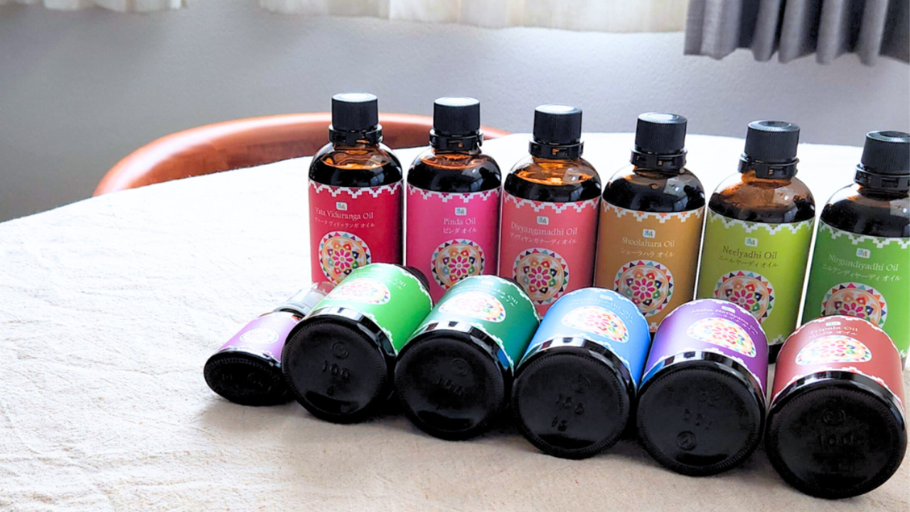 A. 基本の「太白ごま油」は、浸透力が高く、深いリラックスを求める方に最適です。 一方、数十種類のハーブを煮出したアーユルヴェーダオイルは、より深いデトックスをしたい時や、特定の不調にアプローチしたい時に力を発揮します。