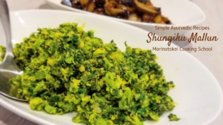 アーユルヴェーダ料理「春菊のマッルン」のレシピをご紹介します。 マッルンは、スリランカの家庭料理で、野菜の炒め蒸しです。