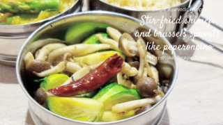【春のピリ辛おかず】しめじと芽キャベツのペペロンチーノ炒め│アーユルヴェーダ料理レシピ